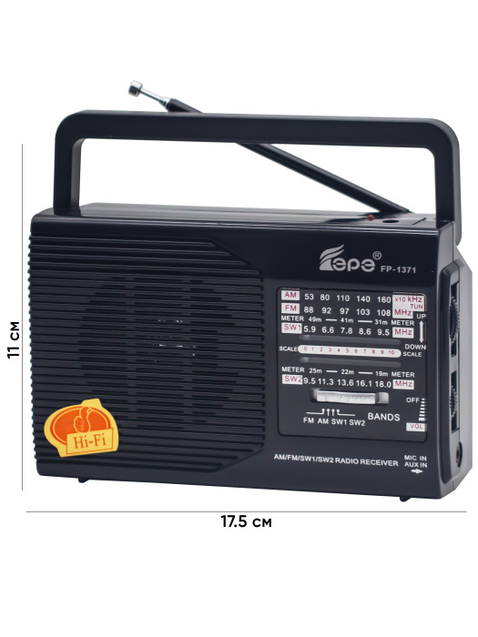 Радиоприемники EPE EP-1371U по-прежнему остаются одним из главных источников новостей. Они радуют нас уже полюбившейся и новой музыкой, помогают расслабиться и поднять настроение. Отдельный, а не встроенный радиоприемник более мобилен и удобен при транспортировке. Чтобы купить хороший радиоприемник, необходимо определиться с его целевым назначением и решить, какие радиостанции он должен принимать – отечественные или еще и зарубежные. Исходя из этого выбирается частотный диапазон устройства и ряд других параметров. От спектра радиочастот зависит количество радиостанций, улавливаемых радиоприемником. Популярные российские радиостанции находятся в диапазоне 88–108 МГц. Для прослушивания радио за городом необходим приемник, включающий FM-диапазон 64–78 МГц. Чтобы устройство ловило иностранные радиостанции, оно должно принимать диапазон AM. Качество звука зависит от количества динамиков. Стереозвучание обеспечивают радиоприемники с двумя динамиками. Есть также модели с одним динамиком, которые выдают звучание умеренного качества, зато стоимость их ниже. Тип антенны влияет на качество приема. Портативные модели используют телескопическую антенну, которая дает уверенный прием. Модели со встроенной антенной более надежные. Работают радиоприемники от сети и на батарейках. Размер и количество батареек определяется мощностью приемника. Производятся приемники, использующие в качестве источника питания аккумулятор. Идеальным принято считать тот радиоприемник, который работает и от сети, и на батарейках. Это позволяет экономить заряд батареек, когда под рукой есть розетка. В нашем каталоге представлено множество доступных по цене моделей, из-за чего вопроса, где купить радиоприемник, не возникает. Хорошим качеством и невысокой стоимостью отличаются модели WAXIBA (ВАКСИБО), KIPO (КИПО) и MAIER (Майер). Мировые гиганты вроде Philips (Филипс) и Sony (Сони) тоже выпускают радиоприемники высокого качества, хотя их модельный ряд несколько ограничен.