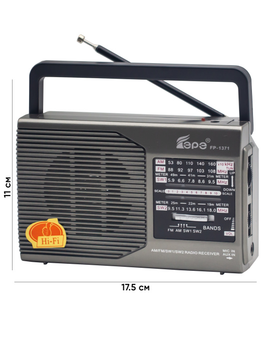 Радиоприемники EPE EP-1371U по-прежнему остаются одним из главных источников новостей. Они радуют нас уже полюбившейся и новой музыкой, помогают расслабиться и поднять настроение. Отдельный, а не встроенный радиоприемник более мобилен и удобен при транспортировке. Чтобы купить хороший радиоприемник, необходимо определиться с его целевым назначением и решить, какие радиостанции он должен принимать – отечественные или еще и зарубежные. Исходя из этого выбирается частотный диапазон устройства и ряд других параметров. От спектра радиочастот зависит количество радиостанций, улавливаемых радиоприемником. Популярные российские радиостанции находятся в диапазоне 88–108 МГц. Для прослушивания радио за городом необходим приемник, включающий FM-диапазон 64–78 МГц. Чтобы устройство ловило иностранные радиостанции, оно должно принимать диапазон AM. Качество звука зависит от количества динамиков. Стереозвучание обеспечивают радиоприемники с двумя динамиками. Есть также модели с одним динамиком, которые выдают звучание умеренного качества, зато стоимость их ниже. Тип антенны влияет на качество приема. Портативные модели используют телескопическую антенну, которая дает уверенный прием. Модели со встроенной антенной более надежные. Работают радиоприемники от сети и на батарейках. Размер и количество батареек определяется мощностью приемника. Производятся приемники, использующие в качестве источника питания аккумулятор. Идеальным принято считать тот радиоприемник, который работает и от сети, и на батарейках. Это позволяет экономить заряд батареек, когда под рукой есть розетка. В нашем каталоге представлено множество доступных по цене моделей, из-за чего вопроса, где купить радиоприемник, не возникает. Хорошим качеством и невысокой стоимостью отличаются модели WAXIBA (ВАКСИБО), KIPO (КИПО) и MAIER (Майер). Мировые гиганты вроде Philips (Филипс) и Sony (Сони) тоже выпускают радиоприемники высокого качества, хотя их модельный ряд несколько ограничен.
