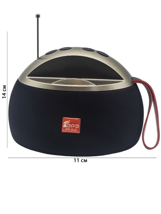 FP-512, бренд EPE – компактный портативный радиоприемник с FM радио, электронным тюнером, мощным динамиком 6 Вт, Bluetooth и держателем для телефона.