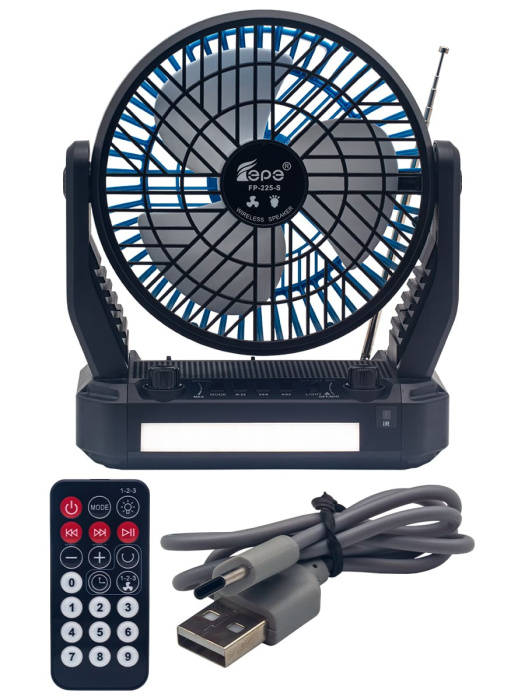FP-225-S, бренд EPE – мощный портативный радиоприемник 6 Вт с FM радио, Bluetooth, цифровым тюнером, солнечной панелью и вентилятором.