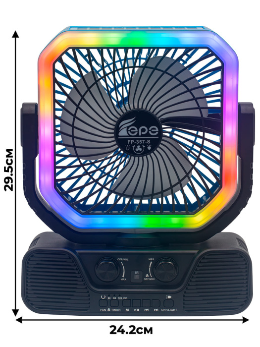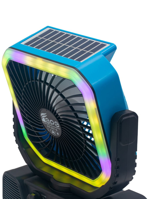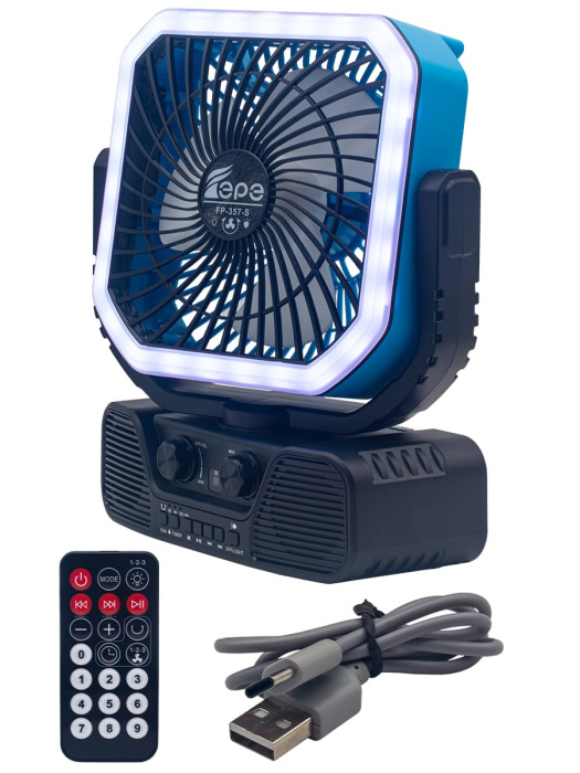 FP-357-S, бренд EPE – многофункциональный портативный радиоприемник с FM радио, Bluetooth, мощным динамиком 7,5 Вт, солнечной панелью, фонариком, вентилятором и пультом ДУ.