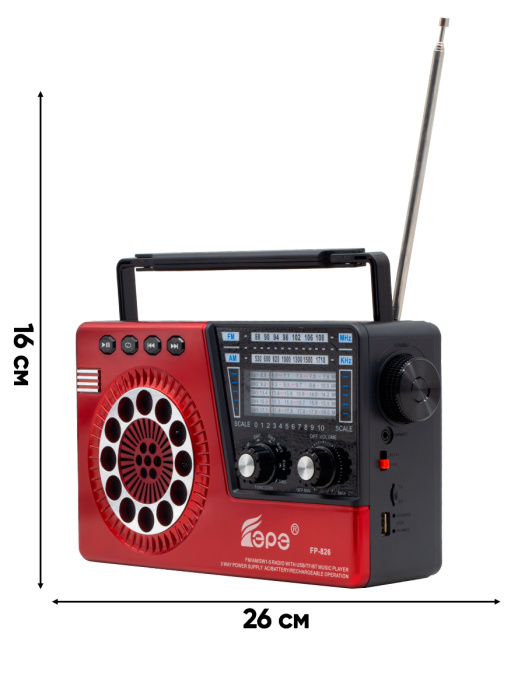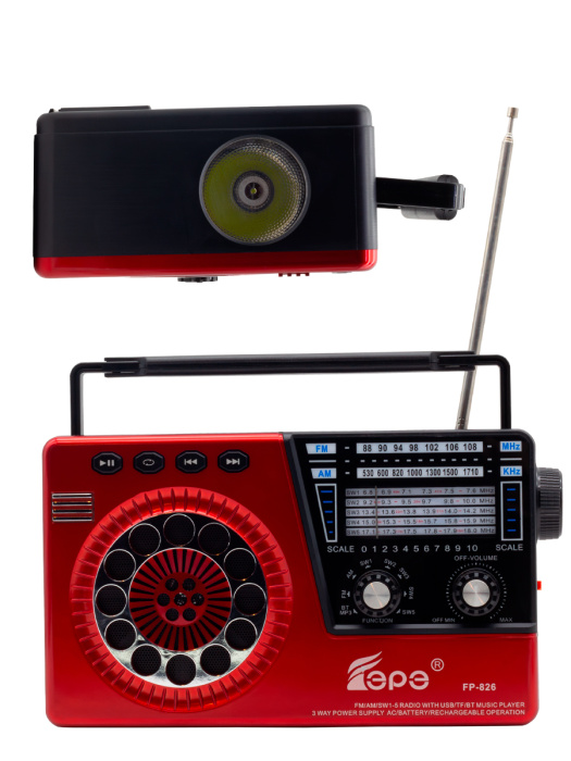 FP-826, бренд EPE – портативный многодиапазонный радиоприемник с FM/AM/SW радио (7 диапазонов), Bluetooth, входом для наушников, динамиком 3 Вт и аккумулятором 18650.