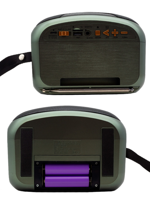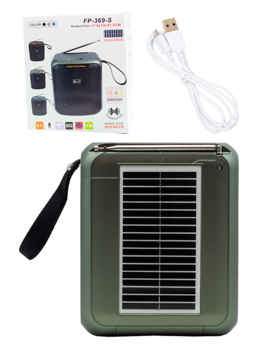 FP-369-S, бренд EPE – мощный портативный радиоприемник с FM радио, электронным тюнером, динамиком 17 Вт, Bluetooth и встроенной солнечной панелью.