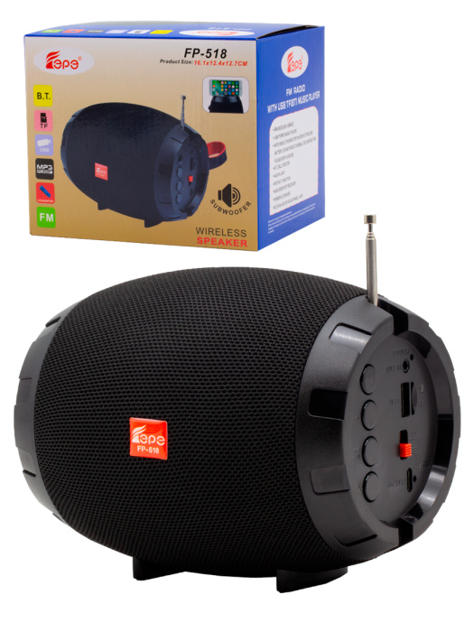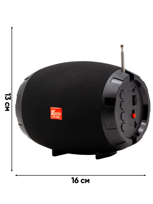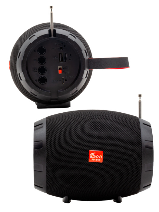 FP-518, бренд EPE – компактный портативный радиоприемник с FM радио, электронным тюнером, мощным динамиком 7 Вт, Bluetooth, держателем для телефона и USB Type-C.