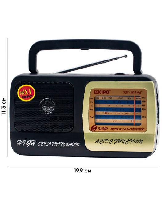 Радиоприемник KIPO KB-408AC | FM/SW/AM | Мощный динамик и аналоговый тюнер | Телескопическая антенна