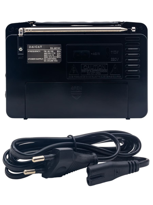 Заголовок: Радиоприемник DAICAT RX-607AC | FM/SW/AM | Мощный динамик 3W | Аналоговый тюнер | Телескопическая антенна | Ремешок | Питание от UM-1