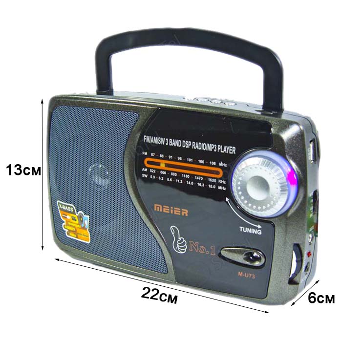 Радиоприемники MEIER M-U73 по-прежнему остаются одним из главных источников новостей. Они радуют нас уже полюбившейся и новой музыкой, помогают расслабиться и поднять настроение. Отдельный, а не встроенный радиоприемник более мобилен и удобен при транспортировке. Чтобы купить хороший радиоприемник, необходимо определиться с его целевым назначением и решить, какие радиостанции он должен принимать – отечественные или еще и зарубежные. Исходя из этого выбирается частотный диапазон устройства и ряд других параметров. От спектра радиочастот зависит количество радиостанций, улавливаемых радиоприемником. Популярные российские радиостанции находятся в диапазоне 88–108 МГц. Для прослушивания радио за городом необходим приемник, включающий FM-диапазон 64–78 МГц. Чтобы устройство ловило иностранные радиостанции, оно должно принимать диапазон AM. Качество звука зависит от количества динамиков. Стереозвучание обеспечивают радиоприемники с двумя динамиками. Есть также модели с одним динамиком, которые выдают звучание умеренного качества, зато стоимость их ниже. Тип антенны влияет на качество приема. Портативные модели используют телескопическую антенну, которая дает уверенный прием. Модели со встроенной антенной более надежные. Работают радиоприемники от сети и на батарейках. Размер и количество батареек определяется мощностью приемника. Производятся приемники, использующие в качестве источника питания аккумулятор. Идеальным принято считать тот радиоприемник, который работает и от сети, и на батарейках. Это позволяет экономить заряд батареек, когда под рукой есть розетка. В нашем каталоге представлено множество доступных по цене моделей, из-за чего вопроса, где купить радиоприемник, не возникает. Хорошим качеством и невысокой стоимостью отличаются модели WAXIBA (ВАКСИБО), KIPO (КИПО) и MAIER (Майер). Мировые гиганты вроде Philips (Филипс) и Sony (Сони) тоже выпускают радиоприемники высокого качества, хотя их модельный ряд несколько ограничен.