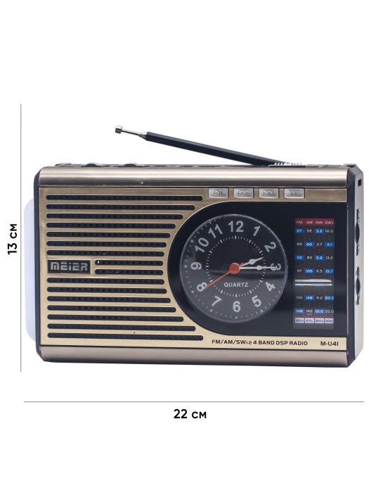 Радиоприемники MEIER M-U41 по-прежнему остаются одним из главных источников новостей. Они радуют нас уже полюбившейся и новой музыкой, помогают расслабиться и поднять настроение. Отдельный, а не встроенный радиоприемник более мобилен и удобен при транспортировке. Чтобы купить хороший радиоприемник, необходимо определиться с его целевым назначением и решить, какие радиостанции он должен принимать – отечественные или еще и зарубежные. Исходя из этого выбирается частотный диапазон устройства и ряд других параметров. От спектра радиочастот зависит количество радиостанций, улавливаемых радиоприемником. Популярные российские радиостанции находятся в диапазоне 88–108 МГц. Для прослушивания радио за городом необходим приемник, включающий FM-диапазон 64–78 МГц. Чтобы устройство ловило иностранные радиостанции, оно должно принимать диапазон AM. Качество звука зависит от количества динамиков. Стереозвучание обеспечивают радиоприемники с двумя динамиками. Есть также модели с одним динамиком, которые выдают звучание умеренного качества, зато стоимость их ниже. Тип антенны влияет на качество приема. Портативные модели используют телескопическую антенну, которая дает уверенный прием. Модели со встроенной антенной более надежные. Работают радиоприемники от сети и на батарейках. Размер и количество батареек определяется мощностью приемника. Производятся приемники, использующие в качестве источника питания аккумулятор. Идеальным принято считать тот радиоприемник, который работает и от сети, и на батарейках. Это позволяет экономить заряд батареек, когда под рукой есть розетка. В нашем каталоге представлено множество доступных по цене моделей, из-за чего вопроса, где купить радиоприемник, не возникает. Хорошим качеством и невысокой стоимостью отличаются модели WAXIBA (ВАКСИБО), KIPO (КИПО) и MAIER (Майер). Мировые гиганты вроде Philips (Филипс) и Sony (Сони) тоже выпускают радиоприемники высокого качества, хотя их модельный ряд несколько ограничен.