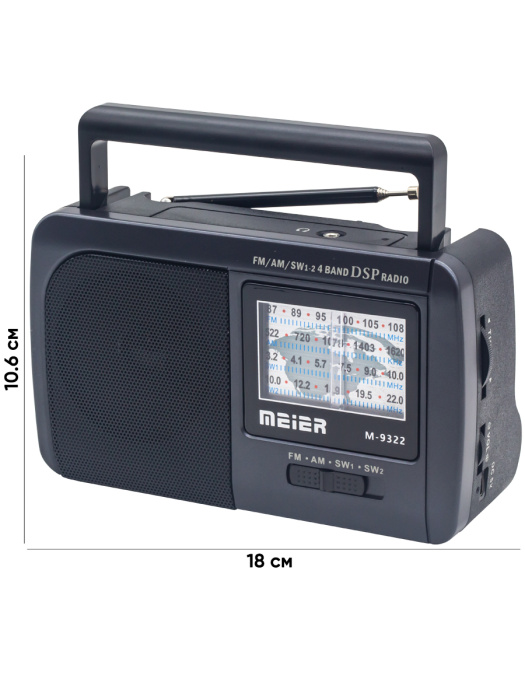 Встречайте MEIER M-9322 – универсальный радиоприемник с аналоговой настройкой и телескопической антенной. Слушайте местные станции, новости и дальние коротковолновые передачи где угодно.