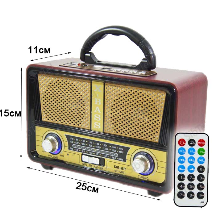 Радиоприемники MEIER M-112BT по-прежнему остаются одним из главных источников новостей. Они радуют нас уже полюбившейся и новой музыкой, помогают расслабиться и поднять настроение. Отдельный, а не встроенный радиоприемник более мобилен и удобен при транспортировке. Чтобы купить хороший радиоприемник, необходимо определиться с его целевым назначением и решить, какие радиостанции он должен принимать – отечественные или еще и зарубежные. Исходя из этого выбирается частотный диапазон устройства и ряд других параметров. От спектра радиочастот зависит количество радиостанций, улавливаемых радиоприемником. Популярные российские радиостанции находятся в диапазоне 88–108 МГц. Для прослушивания радио за городом необходим приемник, включающий FM-диапазон 64–78 МГц. Чтобы устройство ловило иностранные радиостанции, оно должно принимать диапазон AM. Качество звука зависит от количества динамиков. Стереозвучание обеспечивают радиоприемники с двумя динамиками. Есть также модели с одним динамиком, которые выдают звучание умеренного качества, зато стоимость их ниже. Тип антенны влияет на качество приема. Портативные модели используют телескопическую антенну, которая дает уверенный прием. Модели со встроенной антенной более надежные. Работают радиоприемники от сети и на батарейках. Размер и количество батареек определяется мощностью приемника. Производятся приемники, использующие в качестве источника питания аккумулятор. Идеальным принято считать тот радиоприемник, который работает и от сети, и на батарейках. Это позволяет экономить заряд батареек, когда под рукой есть розетка. В нашем каталоге представлено множество доступных по цене моделей, из-за чего вопроса, где купить радиоприемник, не возникает. Хорошим качеством и невысокой стоимостью отличаются модели WAXIBA (ВАКСИБО), KIPO (КИПО) и MAIER (Майер). Мировые гиганты вроде Philips (Филипс) и Sony (Сони) тоже выпускают радиоприемники высокого качества, хотя их модельный ряд несколько ограничен.