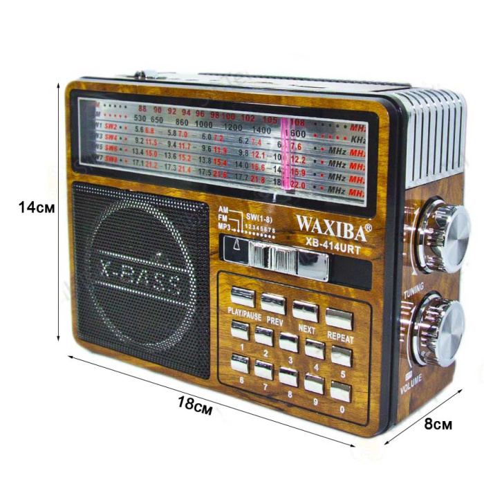 Радиоприемники WAXIBA XB-414 по-прежнему остаются одним из главных источников новостей. Они радуют нас уже полюбившейся и новой музыкой, помогают расслабиться и поднять настроение. Отдельный, а не встроенный радиоприемник более мобилен и удобен при транспортировке. Чтобы купить хороший радиоприемник, необходимо определиться с его целевым назначением и решить, какие радиостанции он должен принимать – отечественные или еще и зарубежные. Исходя из этого выбирается частотный диапазон устройства и ряд других параметров. От спектра радиочастот зависит количество радиостанций, улавливаемых радиоприемником. Популярные российские радиостанции находятся в диапазоне 88–108 МГц. Для прослушивания радио за городом необходим приемник, включающий FM-диапазон 64–78 МГц. Чтобы устройство ловило иностранные радиостанции, оно должно принимать диапазон AM. Качество звука зависит от количества динамиков. Стереозвучание обеспечивают радиоприемники с двумя динамиками. Есть также модели с одним динамиком, которые выдают звучание умеренного качества, зато стоимость их ниже. Тип антенны влияет на качество приема. Портативные модели используют телескопическую антенну, которая дает уверенный прием. Модели со встроенной антенной более надежные. Работают радиоприемники от сети и на батарейках. Размер и количество батареек определяется мощностью приемника. Производятся приемники, использующие в качестве источника питания аккумулятор. Идеальным принято считать тот радиоприемник, который работает и от сети, и на батарейках. Это позволяет экономить заряд батареек, когда под рукой есть розетка. В нашем каталоге представлено множество доступных по цене моделей, из-за чего вопроса, где купить радиоприемник, не возникает. Хорошим качеством и невысокой стоимостью отличаются модели WAXIBA (ВАКСИБО), KIPO (КИПО) и MAIER (Майер). Мировые гиганты вроде Philips (Филипс) и Sony (Сони) тоже выпускают радиоприемники высокого качества, хотя их модельный ряд несколько ограничен.
